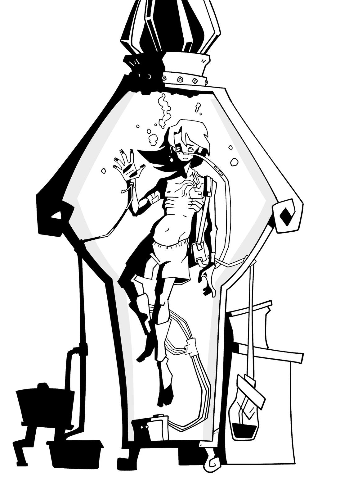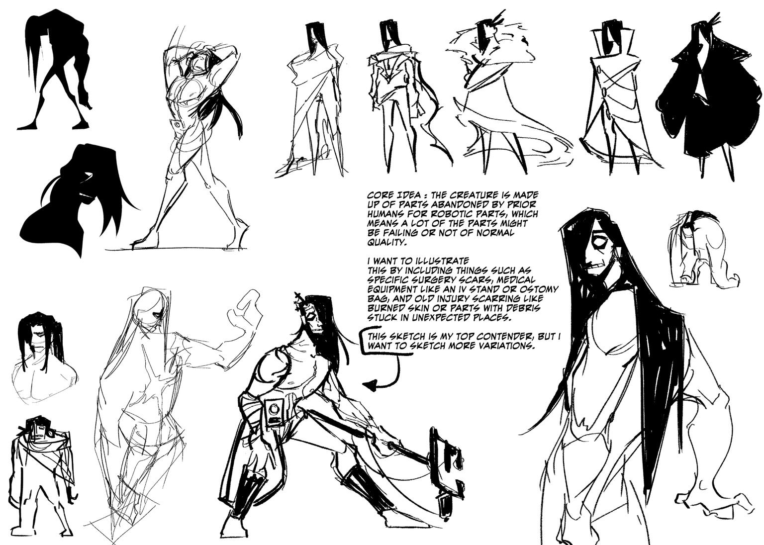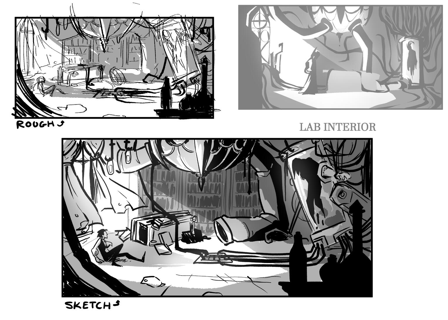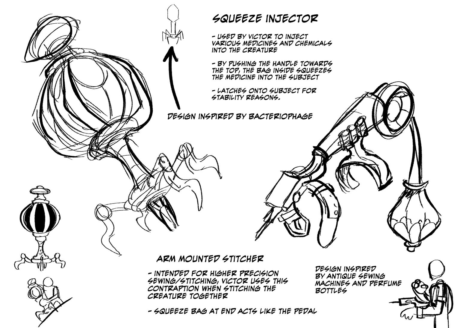 Visual development work on a biopunk Frankenstein story set in a style inspired by Mike Mignola.